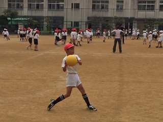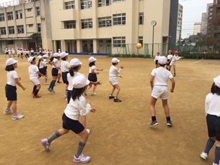 体育の時間に2年生全員でドッジボールをしました。