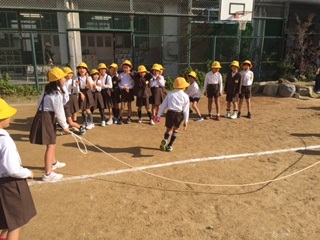 みんなでお昼休みに、大縄で8の字の練習をしました。