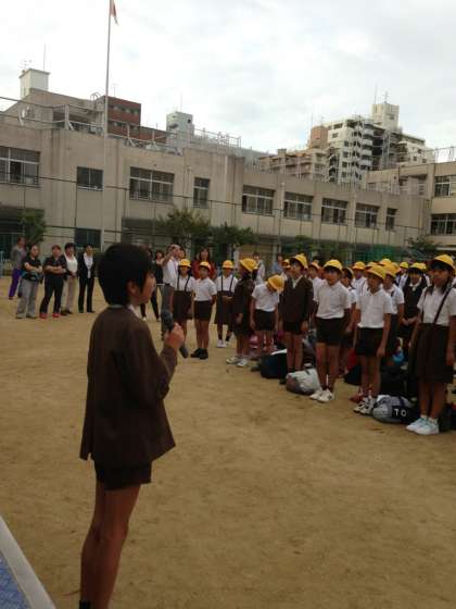 昨日の台風の影響もなく、好天のもとで修学旅行に出発です。これも子どもたちの日頃の行いが良かったおかげでしょう。多数の保護者の方々に見送られて、みんな元気に出発しました。
