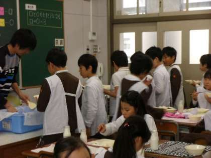 今日は1年に1回のメニューだったので、おかわりの列が長くなりました。食べ始めたと思っていたら、もうごちそうさまをしている人がいます。1年生の時には、時間がどれだけあっても食べ終わらなかった人も、モリモリ食べていました。