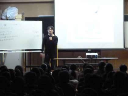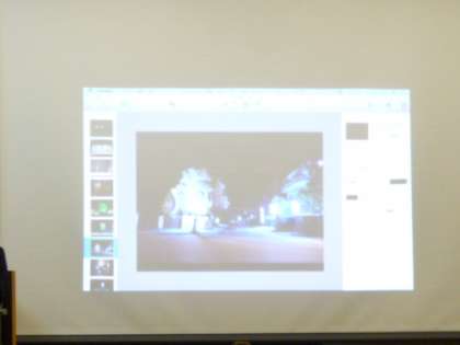 タブレットで映像を作り、校内のいろいろな場所に光を当てて、プロジェクターでいろいろなところに映す。