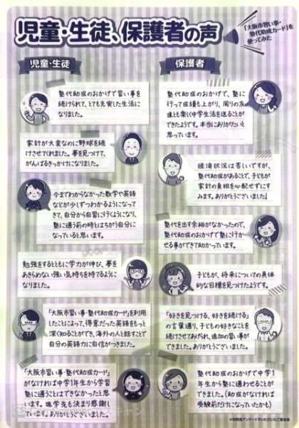 7月19日の午後に、関係機関より塾代助成の案内が届きました。