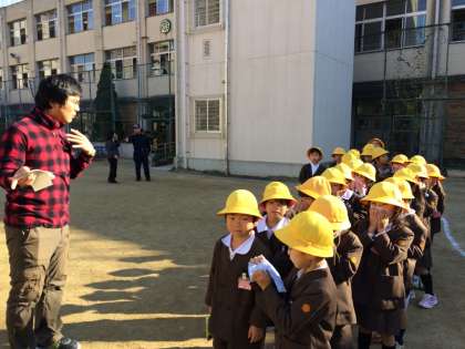 今日の土曜授業は、防災訓練ということで煙体験をしました。