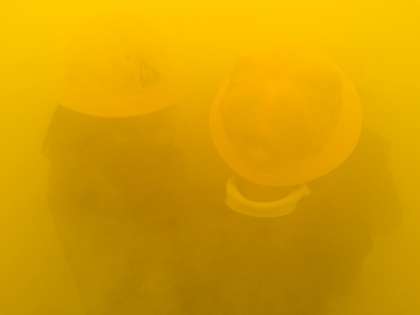 ハンカチで口をおさえ体を低くしてまっすぐ前に進んではいましたが、前が全く見えませんでした。