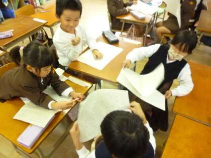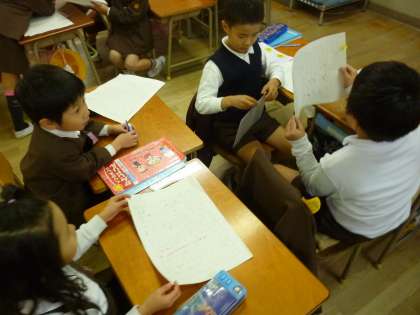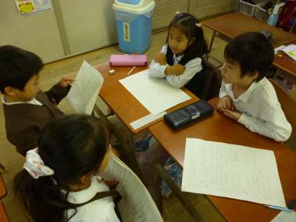 木曜日は、国語の時間に、グループで作文の発表をしました。