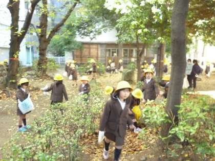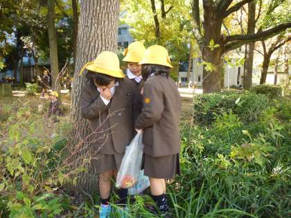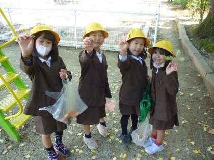 大小様々などんぐりを拾ったり、赤や黄色の葉を拾ったりしました。