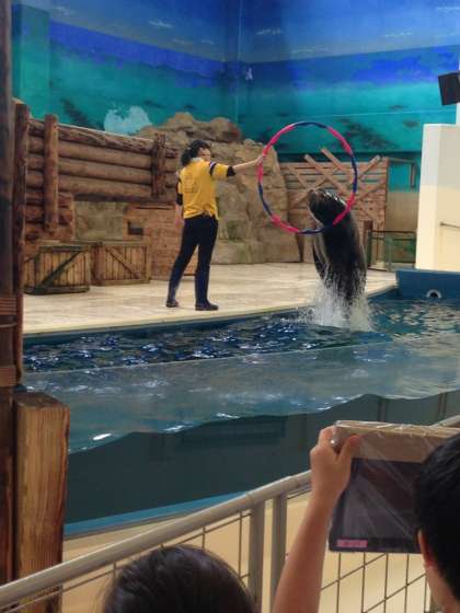 鳥羽水族館、最後の見所は、アシカショー。これをみて、ミキモト真珠館へ向かいます。