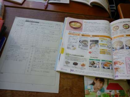 ナップザック作りが終わり、次は調理実習にむけて計画をたてています。