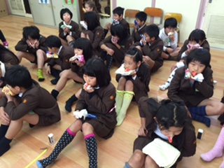 3分間じっと砂時計の砂が落ちないか、待っています。