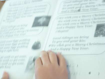 グローバルタイムでは、教室でクリスマスソングを歌っています。