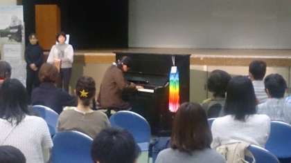 西区民センターで被爆ピアノ演奏会があり、堀江小学校の6年生児童がショパンの「ポロネーズ 変イ長調 遺作」を平和を祈って演奏しました。