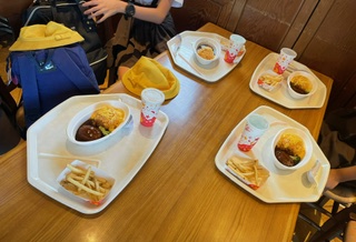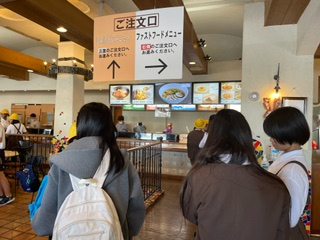 昼食は、ミールクーポンで思い思いのメニューを選んで食べます。