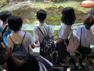 鳥羽水族館での活動は、A・B班に分かれての昼食・見学です。アシカショーやペンギンのお散歩も楽しみました。