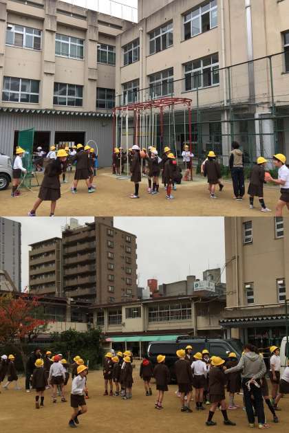 天気は少し下り坂ですが、運動場が使える間は、子ども達も教師も元気に外遊び!