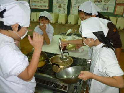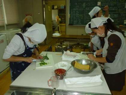 包丁も上手に使い、大根・ねぎ・油揚げを切りました。