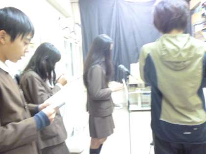 テレビ集会のため、放送室のスタジオから全教室に放映しました。