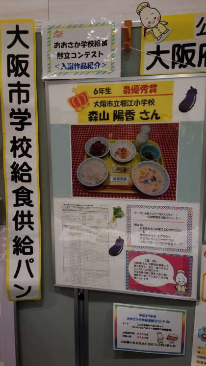 大阪ガス ハグミュージアムで「学校給食・食育フェア2015」が開催され、「おおさか学校給食コンテスト」で最優秀賞に輝いた本校6年1組の児童の作品パネルが展示されています。