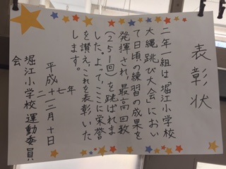2年生 大なわ大会表彰