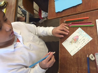 さるやたいなどの絵を描いたり、頑張りたいことを書いたりしました。