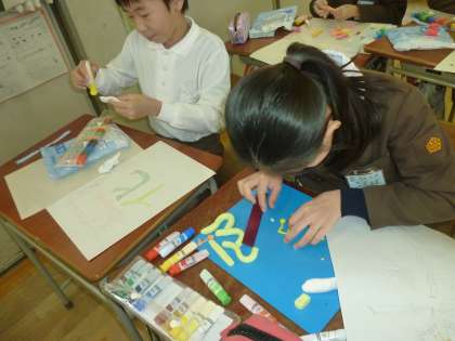 紙粘土を使って 来年の自分に向けての一文字を作っています。