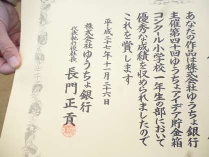郵貯アイディア貯金箱コンクールで表彰しました。