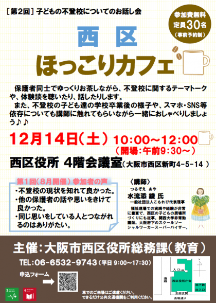 12月14日(土)10:00〜子どもの不登校についてのお話し会を開催します。