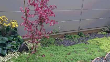 ひっそりと静まりかえった校舎の片隅で凛とたたずむ堀江小学校の和庭.