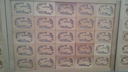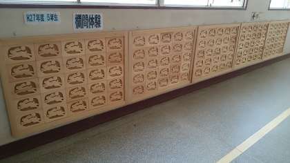 昨年、5年生が作成した「欄間」を職員室前の廊下に掲示しています。