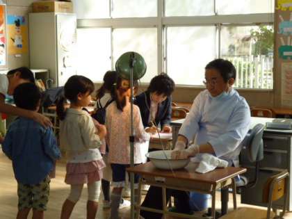 来年4月に1年生になる子どもたちの健康診断を行いました。子どもたちは、緊張することなく普段通りの様子でした。教職員たちは、来年どんな子が入学してくるのか、ワクワクして応対していました。