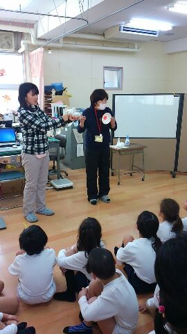 二測定の前に手洗いの大切さを知らせる実験を2つ行いました。