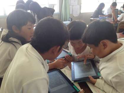 川の様子についてタブレットを使って比べました。
