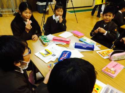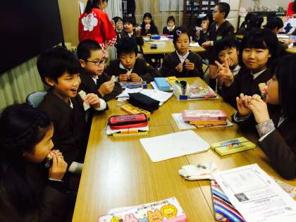 みんなで食べるおこしはとてもおいしかったようで、笑顔いっぱいでした。