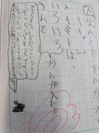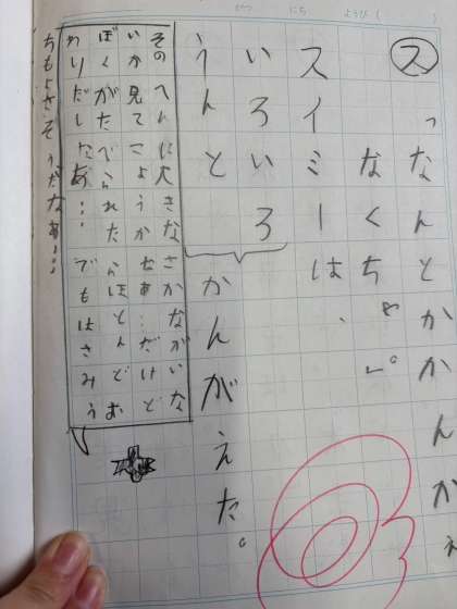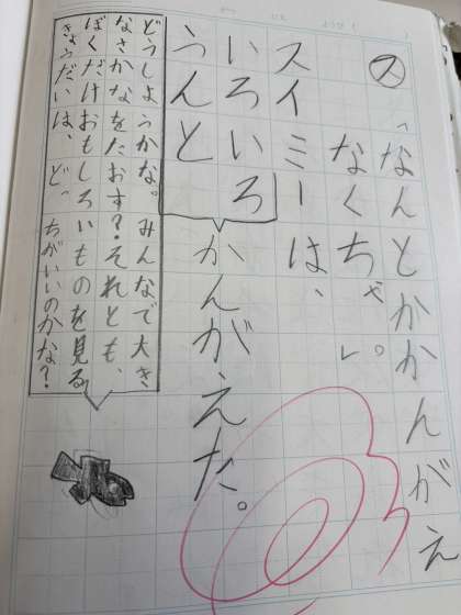 色んな想像を膨らませながら、スイミーが考えたことをノートに書きました。