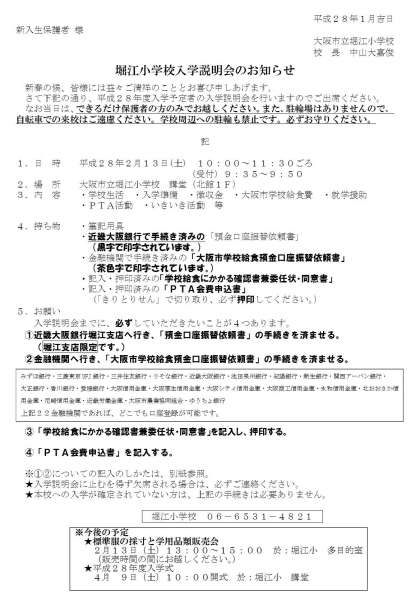 不明な点がございましたら、堀江小学校 教頭、もしくは、教務主任までお願いします。
