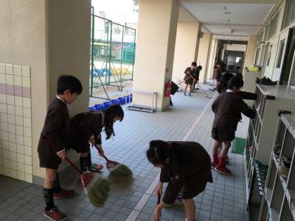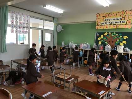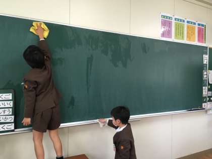 ほりえ小学校の「そうじのしかた さしすせそ」のお約束を守って1年生も掃除を頑張っています。
