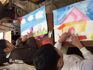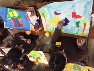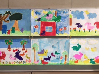 図工の時間に「あつまれ おなじかたちいっぱい」の仕上げをしました。