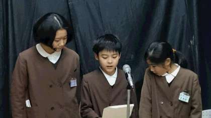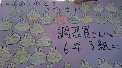 調理員さんが、お礼の言葉とともに、「給食は栄養があるので残さず食べて、十分睡眠をとって、しっかり体をうごかしてたくましい体を作ってください」というお話をしました。