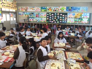 5年生のお兄さんとお姉さんと一緒に給食を食べました。