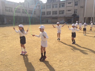 体育の時間に、なわとびの練習をしました。