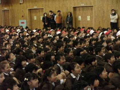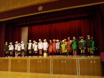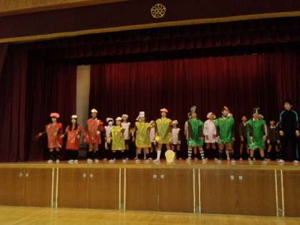 堀江小学校の子ども達は、給食できらいなものを残していました。そんなことをしているので、しんどくなる子どもがたくさんいます。先生は困ってしまいますが、レッド・イエロー・グリーンのスリースターズが現れ、子ども達のすききらいをなくしてくれました。妖怪ウォッチの曲に合わせたミュージカル仕立ての劇だったので、みんなニコニコ見ていました。給食をしっかり食べてね!