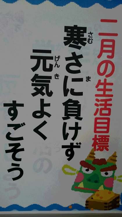 ・生活指導:今月の目標「寒さに負けず元気よくすごそう」