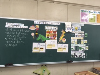 栄養指導で、「ほねやはをじょうぶにしよう」という学習をしました。