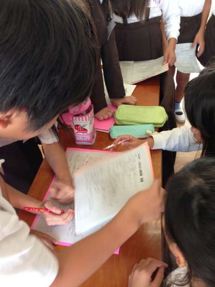 班のめあてや並び方、どんなことをするのかなど、班長を中心にみんなで話し合っていました。