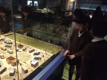 江戸時代の町なみに、子どもたちも大興奮で見学していました。