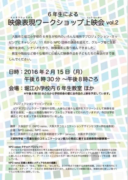 今回は校舎へのプロジェクションマッピングでの上映も行います。