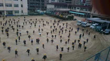 登校したらすぐに全児童で縄跳びを行っています。