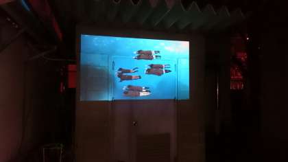 日が暮れてから、校内の倉庫や手洗い場などで6年生が創った映像を上映しました。