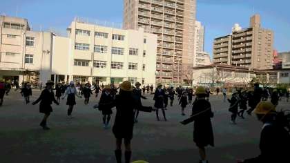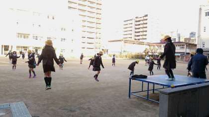 2月26日まで戸外遊び週間として、朝の登校後みんなで縄跳びを行っています。