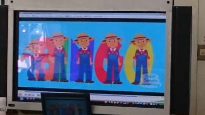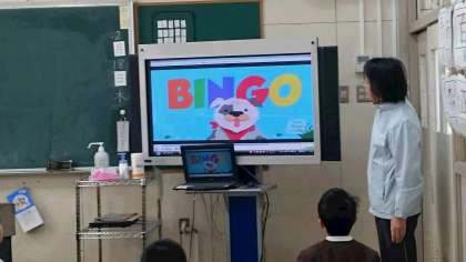 「BINGO」の曲を歌いながら、歌詞に合わせて表現しました。