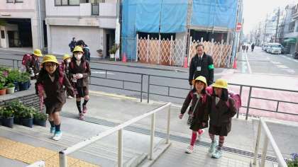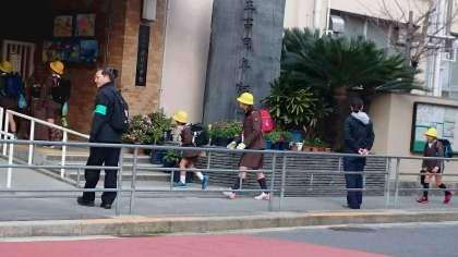 大阪府警察本部 府民安全対策課 子どもの安全見まもり隊サポーターの方々も朝の見守りを行ってくださいました。